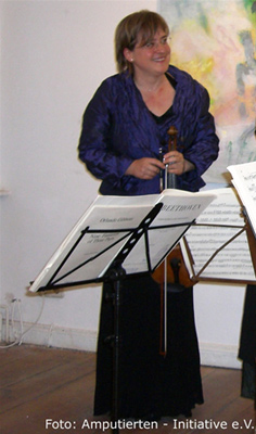 Die erfolgreiche Versorgung ist auf dem Foto zu sehen, das eine professionelle Geigerin zeigt.